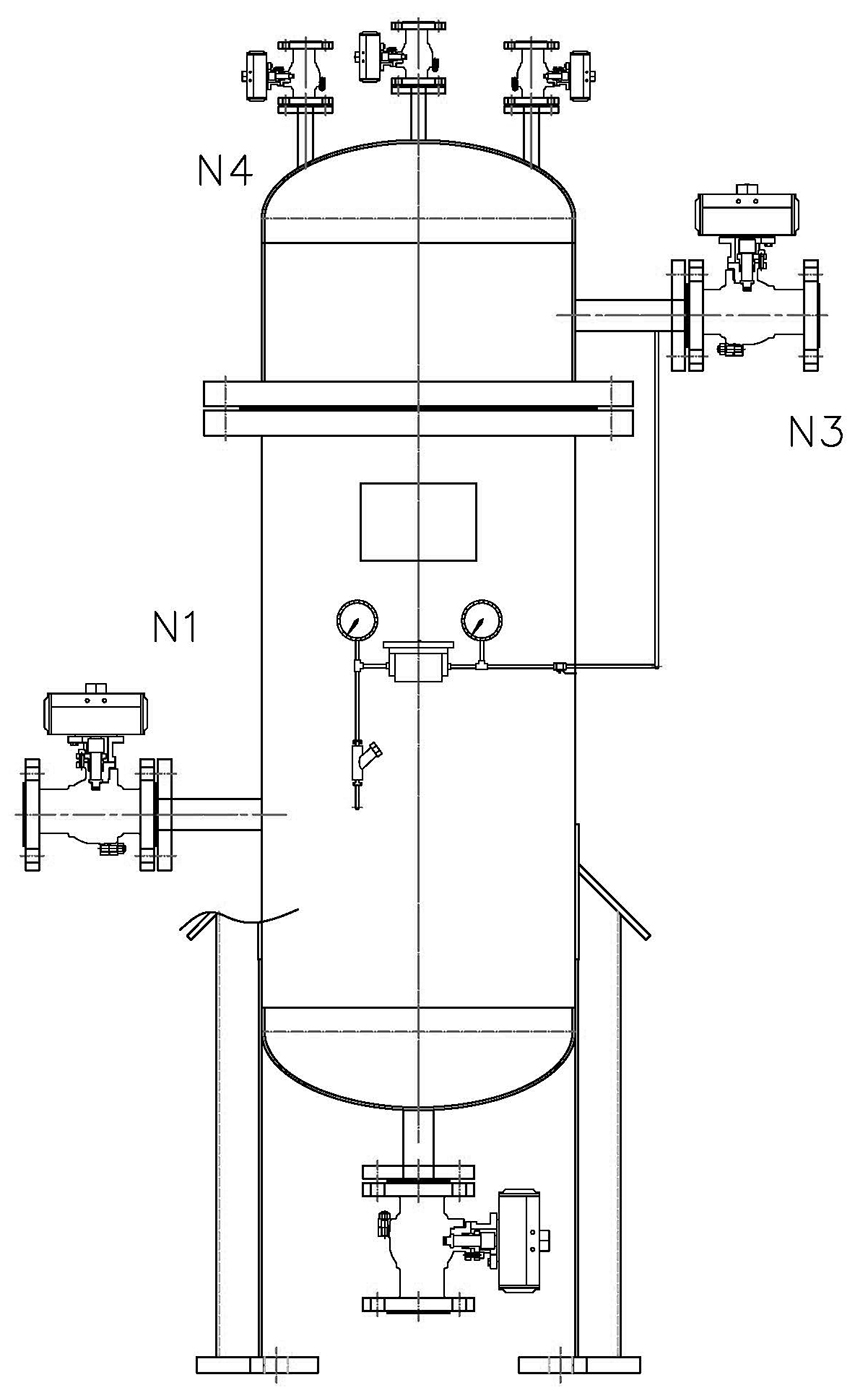 加入气体反洗时,反冲气体从滤器顶部进入,同时设备下部排污阀打开,过滤器内部的高速气流形成爆破,气流和介质共同由内向外通过滤芯,滤芯表面滤饼脱除。