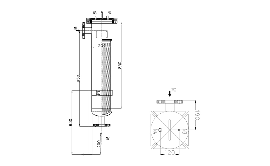 总高 mm | 筒体直径 mm | 滤袋直径 mm | 进出口 |
